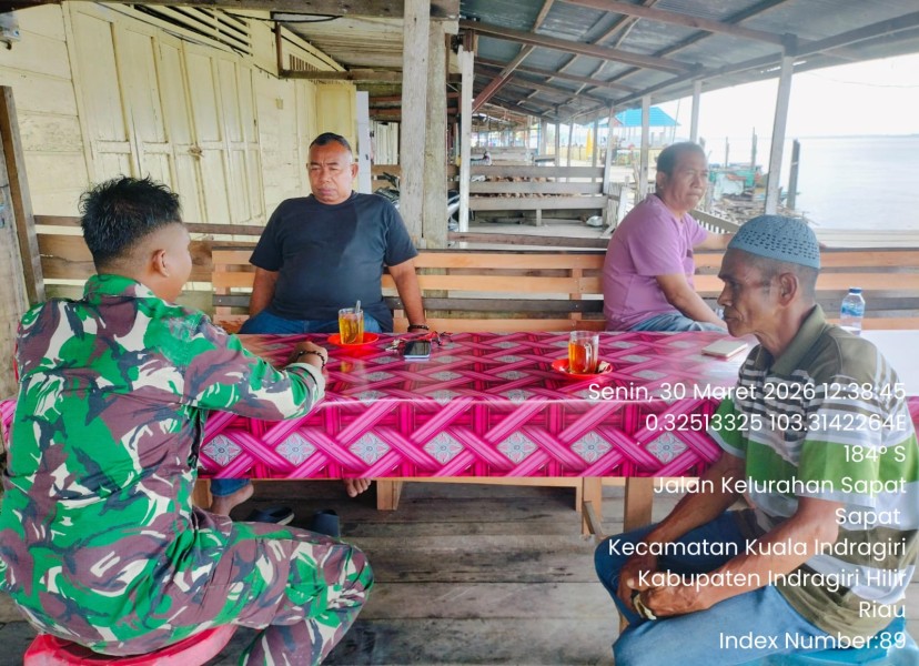 KUINDRA, Medialokal.co - Babinsa Koramil 04/Kuindra, Praka M. Adzan Niko, melaksanakan kegiatan Komunikasi Sosial (Komsos) dengan masyarakat di Kampung Pancasila, Kelurahan Sapat, Kecamatan Kuindra, Kabupaten Indragiri Hilir, pada Senin (30/3/2025).