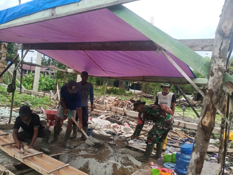 Dalam suasana yang akrab, Serka Wisnu terlihat bahu-membahu membantu para tukang dalam berbagai pekerjaan ringan hingga sedang. Kehadiran Babinsa di tengah pekerja tidak hanya mempererat hubungan silaturahmi, tetapi juga memberikan semangat dan motivasi agar proses pembangunan berjalan lancar, tepat waktu, dan tetap menjaga kualitas hasil kerja.