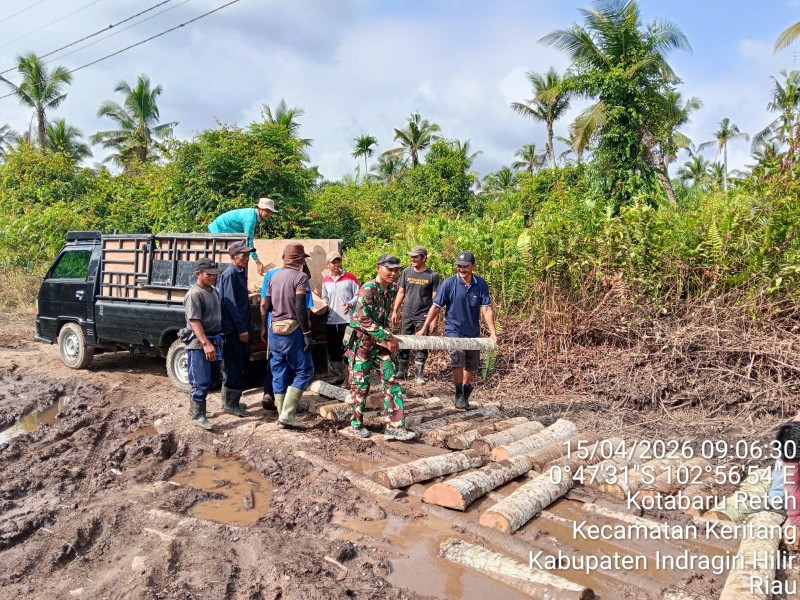INHIL, MEDIALOKAL.CO – Babinsa Koramil 09/Kemuning Kodim 0314/Inhil, Kopda Aldi Spt, melaksanakan kegiatan gotong royong bersama masyarakat binaan di wilayah teritorialnya, Rabu (15/04/2026).