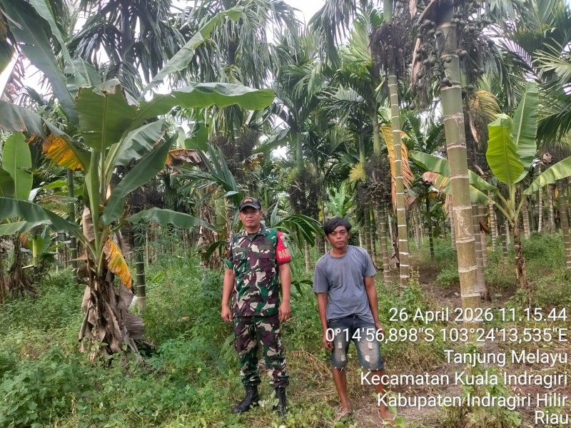 Kuindra – Minggu (26/4/2026) pukul 11.00 WIB, terik tak menghalangi langkah Serda Ali B. Harahap. Babinsa Koramil 04/Kuindra itu bergerak bersama dua warga menyisir tapal batas di Desa Tanjung Melayu, Kecamatan Kuala Indragiri, Inhil. Dua unit SPM jadi saksi: mereka sedang menjaga napas Inhil.