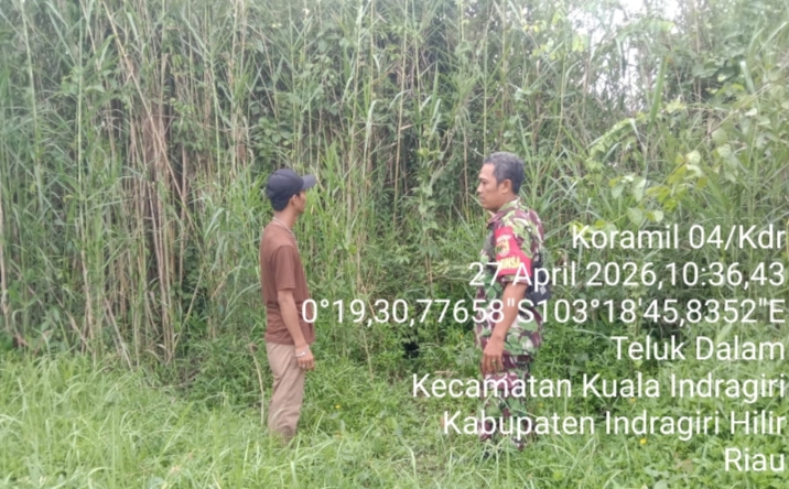 Kuindra – Selasa (28/4/2026) pukul 11.00 WIB, matahari tepat di atas kepala. Panas tak jadi alasan. Babinsa Perigi Raja Koramil 04/Kuindra bergerak bersama satu warga. Dua unit SPM meraung, membelah jalan setapak menuju tapal batas. Selama satu setengah jam, mereka menyisir titik koordinat 0°19'30,77618"S 103°18'45,8372"E. Mencari musuh yang tak kasat mata: titik api.