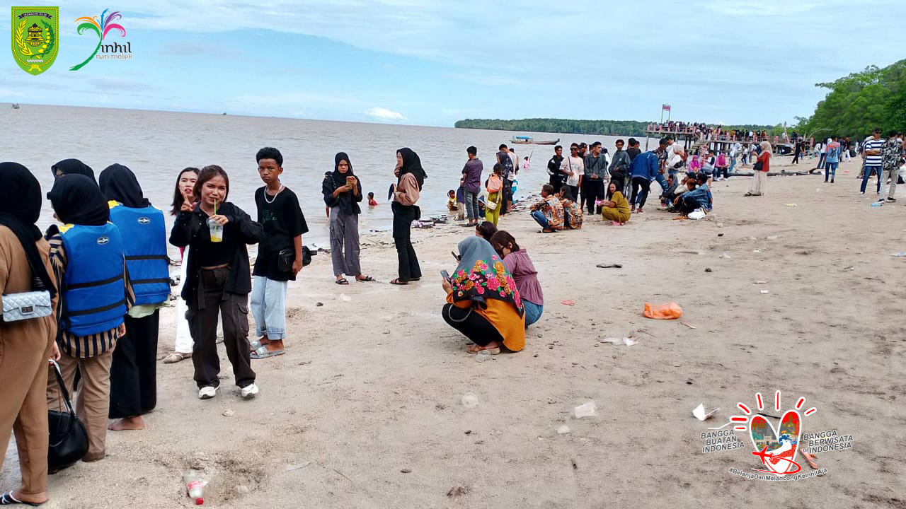 Terlihat ribuan masyarakat Kabupaten Indragiri Hilir tumpah ruah memadati destinasi wisata Pantai Solop di hari pertama libur lebaran hingga beberapa hari kedepan.