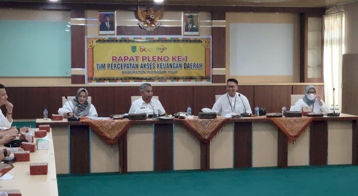 TEMBILAHAN, Medialokal.co - Pemerintah Kabupaten Indragiri Hilir melalui Bagian Perekonomian Sekretariat Daerah Inhil menggelar Rapat Pleno ke-1 Tim Percepatan Akses Keuangan Daerah (TPAKD) di Aula Lantai 5 Kantor Bupati pada Rabu pagi, 14 Agustus 2024.