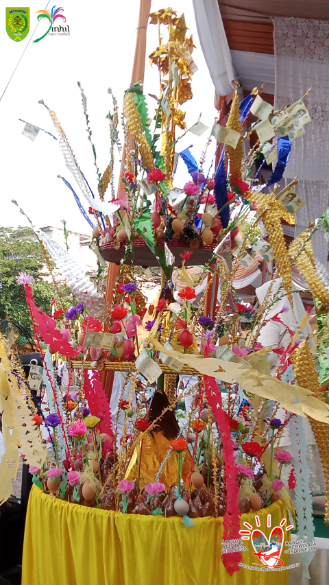 Indragiri Hilir - Sebagai bagian dari tradisi kebudayaan dalam memeriahkan suatu acara keagamaan di Kabupaten Indragiri Hilir biasa tidak lepas dari hiasan bunga tabak telur.