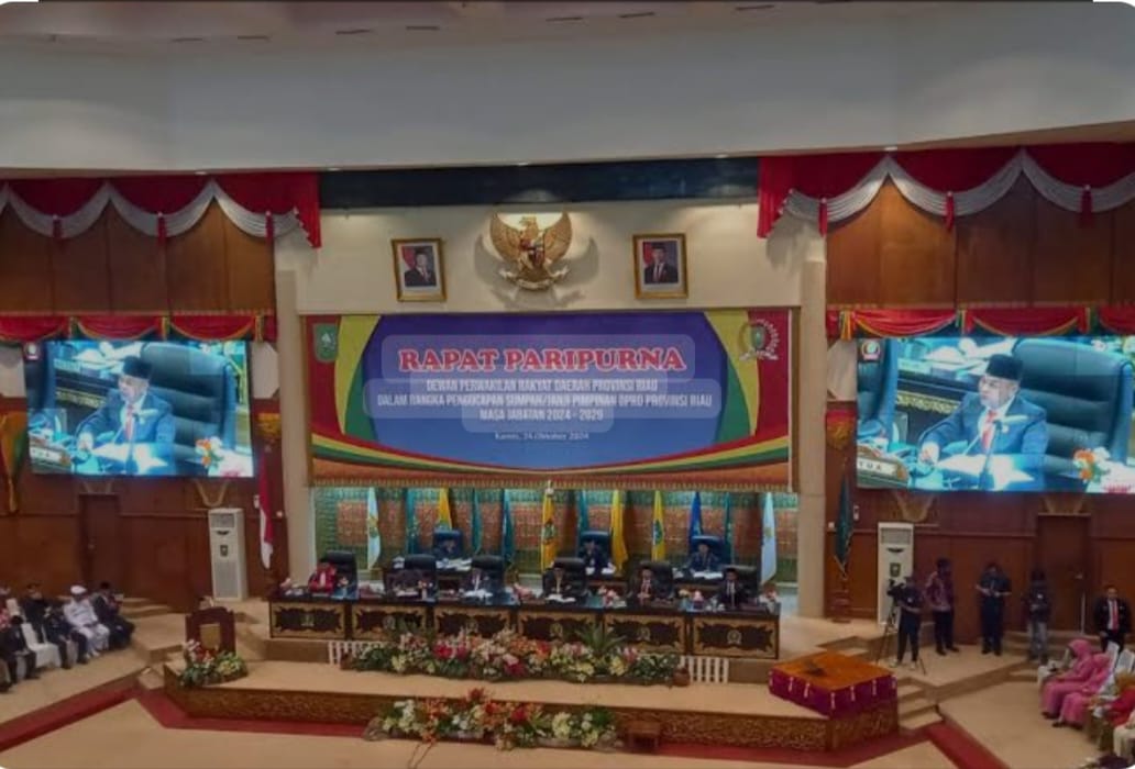PEKANBARU, MEDIALOKAL.CO — Pimpinan Dewan Perwakilan Rakyat Daerah (DPRD) Provinsi Riau periode 2024-2029 resmi dilantik. Pelantikan ini dilakukan dalam rapat paripurna di Gedung DPRD Riau, Pekanbaru, Kamis 24 Oktober 2024.