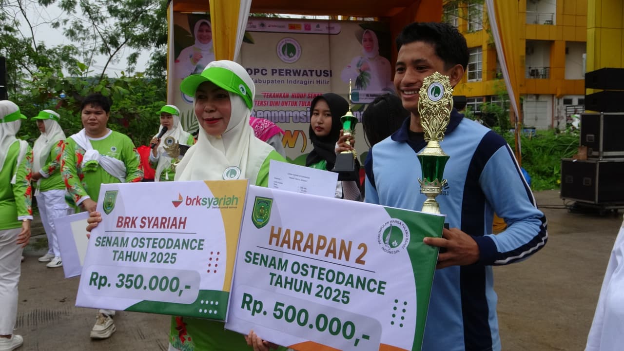 Selain rangkaian sosialisasi dan edukasi, acara ini juga diramaikan dengan penyerahan hadiah kepada pemenang lomba Osteodance yang digelar sehari sebelumnya. Penyerahan hadiah dilakukan oleh Asisten II Setda Inhil bersama Ketua DPC Perwatusi Kabupaten Inhil.(Galery)