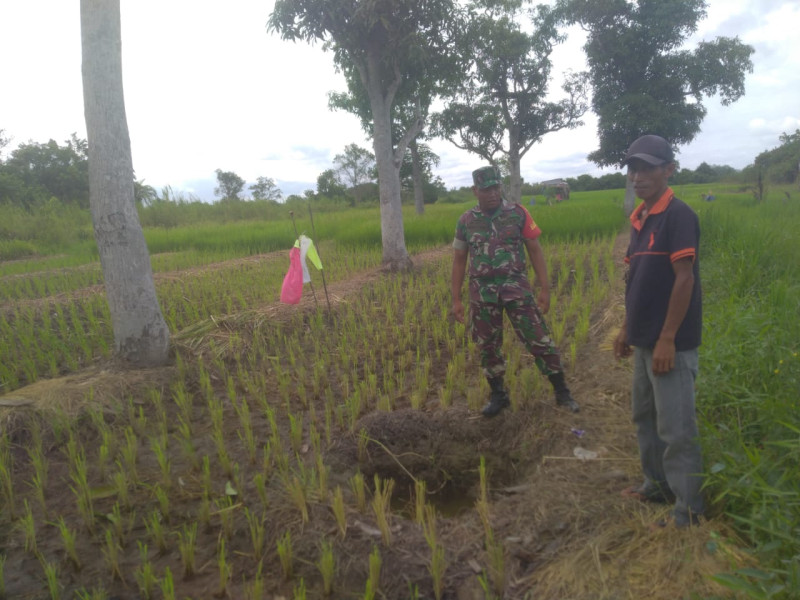 Babinsa Koramil 03/Tpl Melaksanakan Komsos Sembari Cek Tanaman Padi Bersama Petani