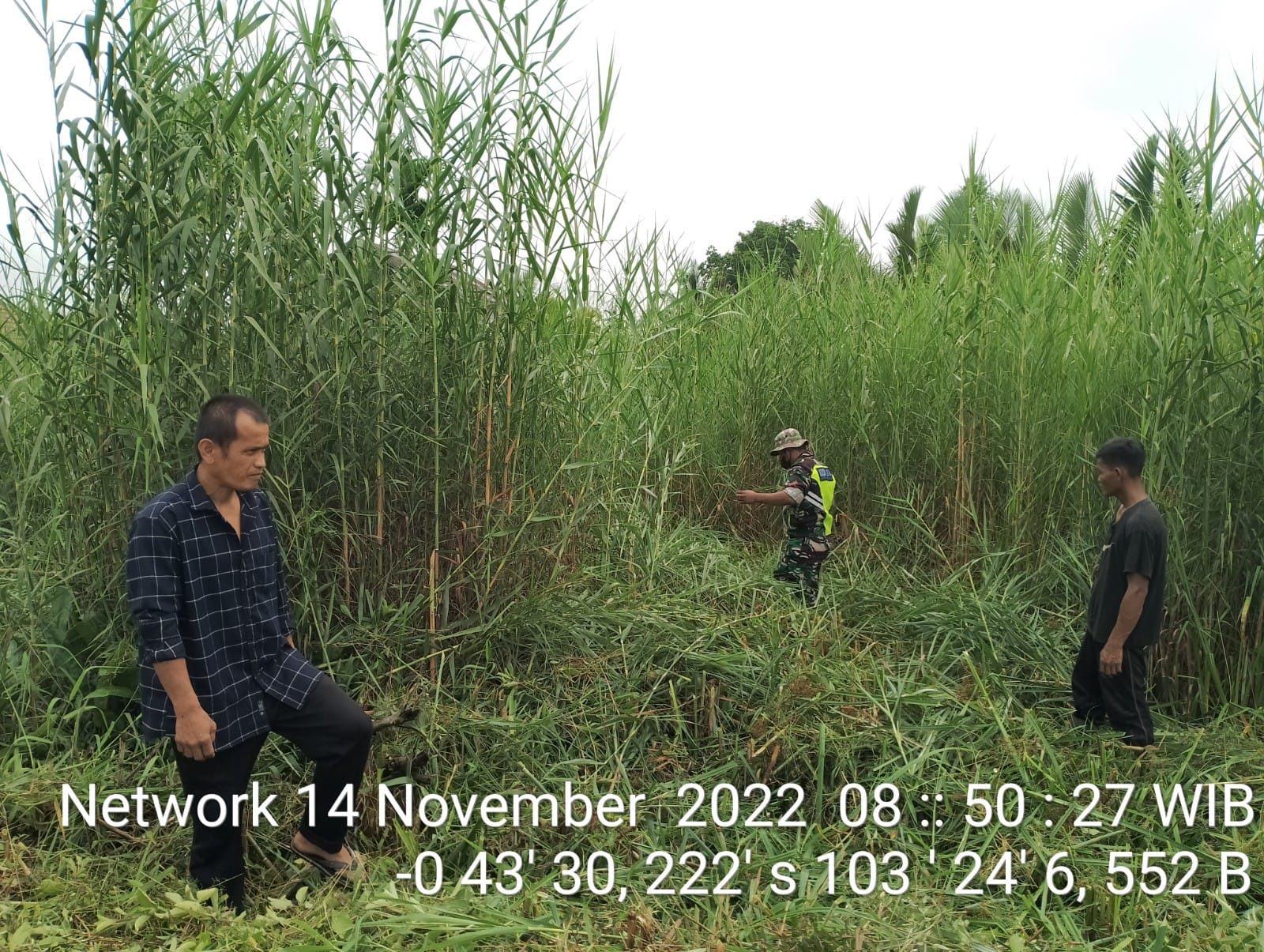 Susuri Kebun Kelapa, Babinsa Koramil 03/Tpl dan Warga Patroli Karhutla