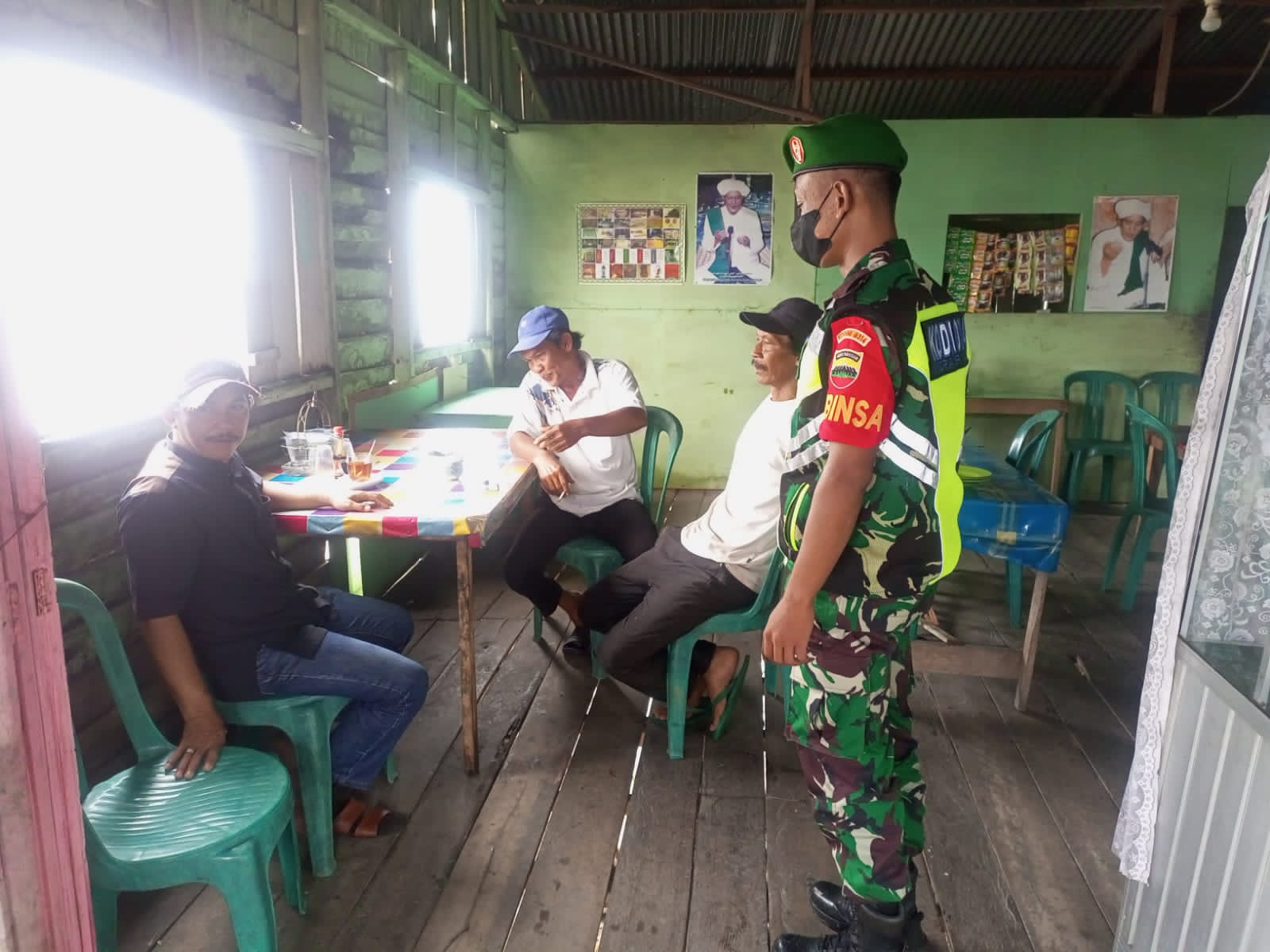 Kegiatan Sosialisasi dan Penegakan Prokes Oleh Personel Koramil 09/Kemuning di Desa Keritang