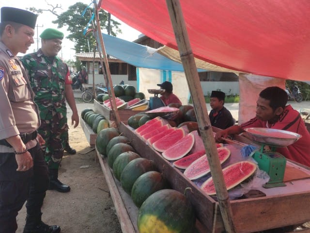 Babinsa Koramil 03/Tpl Bersinergi Dengan Polsek Tempuling Pantau Pasar Takjil Ramadhan