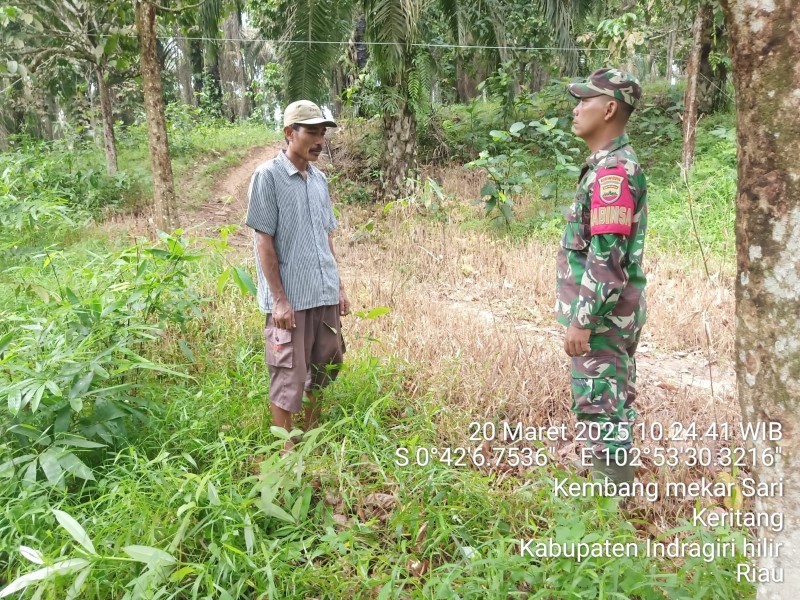 Babinsa Koramil 09/Kemuning Gelar Patroli Karhutla di Desa Kembang Mekar Sari