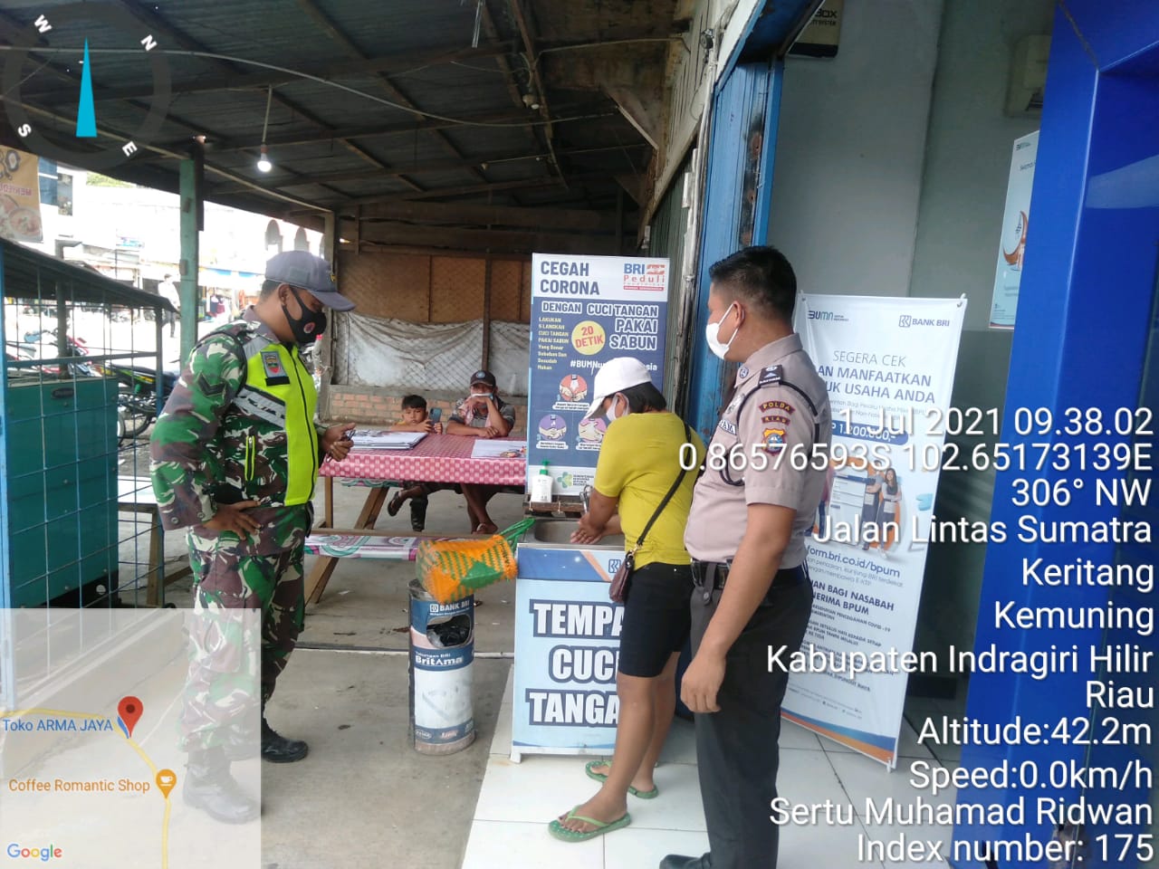 Babinsa 09/Kemuning Lakukan Penegakan Disiplin Protkes di Pasar Keritang Hulu