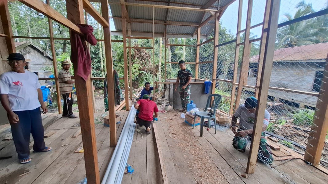 Satgas TMMD Ke-123 Kodim 0314/Inhil Kebut Pembangunan Rumah Layak Huni di Desa Karya Tunas Jaya