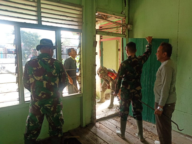 Kerja Bakti Danramil 09/Kemuning Dalam Pembongkaran Pos Ramli Kota Baru