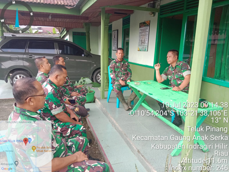 Danramil 05/Gas Lettu Slamet Hirohito Laksanakan Apel Pengecekan Angota Dan Berikan Arahan Serta Evaluasi Terhadap Anggota nya