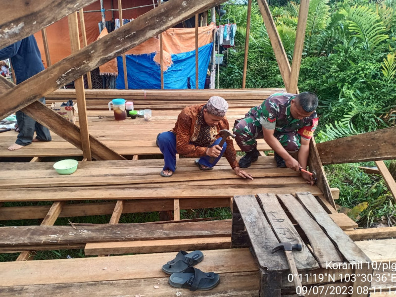 Budayakan Hidup Gotong Royong Bersama Babinsa Koramil 10/Pelangiran Untuk Meringankan Beban Masyarakat