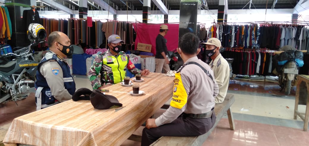 Pantau Pasar Tradisional, Babinsa Koramil 09/Kemuning Imbau Masyarakat Patuhi Protkes