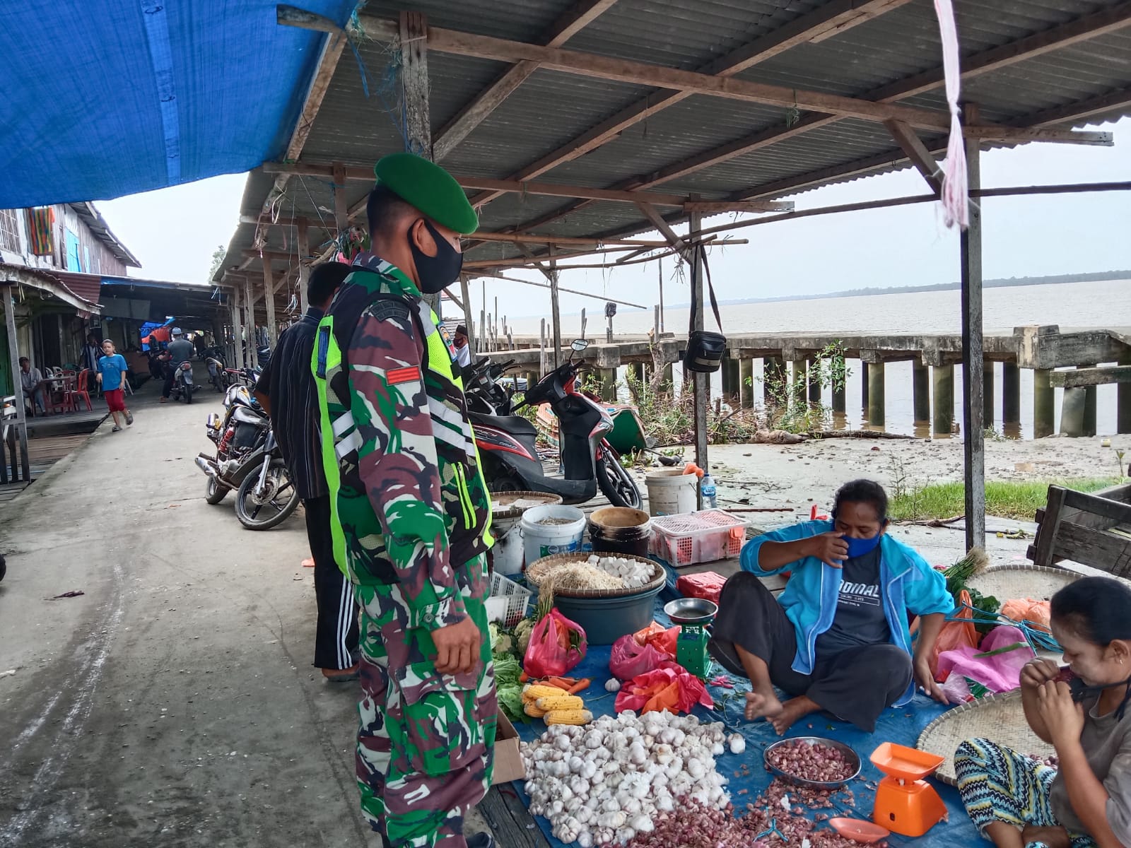 Babinsa Koramil 04/Kuindra Imbau Pedagang dan Pembeliuntuk Patuhi Protokol Kesehatan