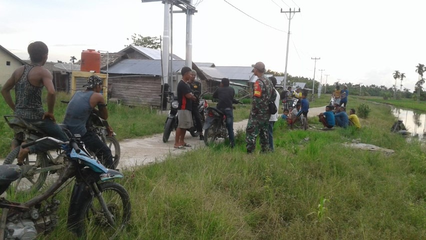 Meski Diguyur Hujan, Koramil 05/GAS Tetap Sosialisasikan Larangan Bakar Lahan