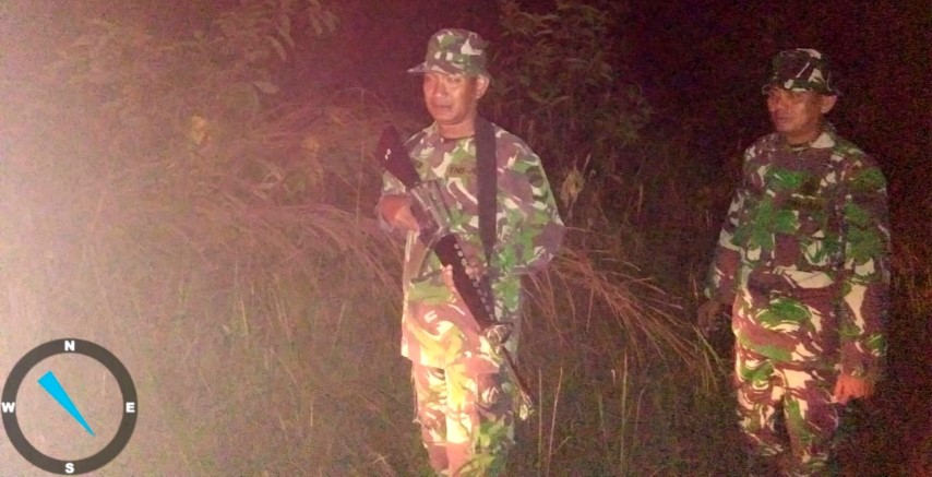 Antisipasi Karhutla, Koramil 09/Kemuning Giat lakukan Patroli Karhutla Bahkan Hingga Malam Hari