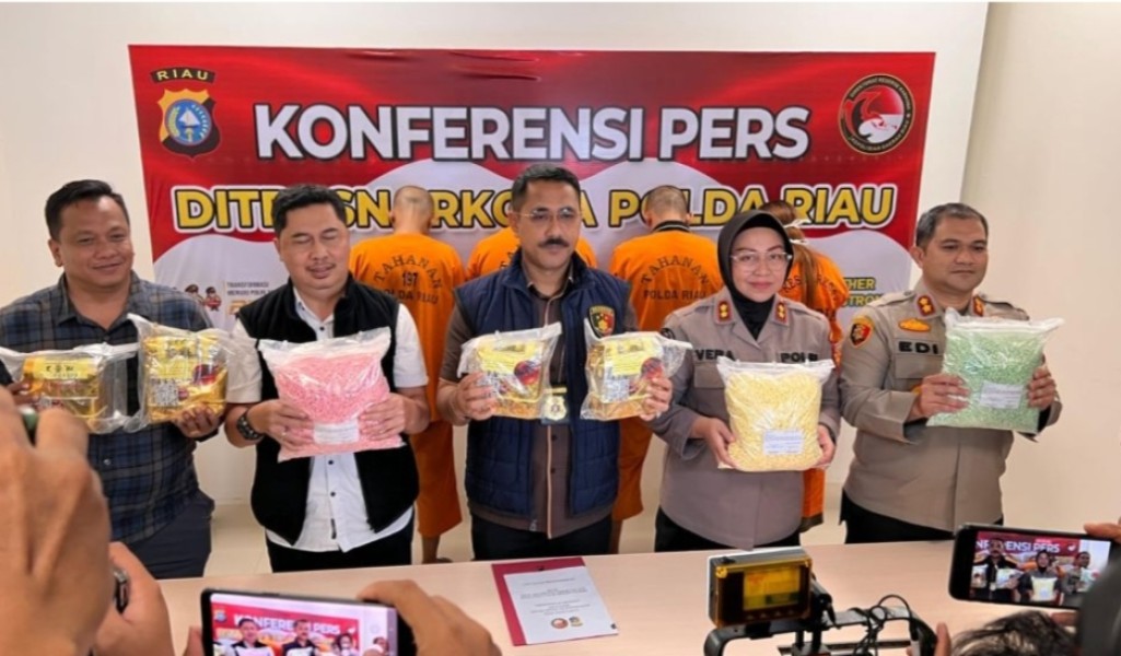 Polda Riau Gagalkan Pengiriman Sembilan Kg Sabu dan 30 Ribu Pil Ekstasi ke Palembang