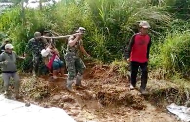 Aksi Heroik Anggota TNI Tandu Ibu Melahirkan Sejauh 2 Km, Lewati Jalan Becek, Lihat Vidonya Disini