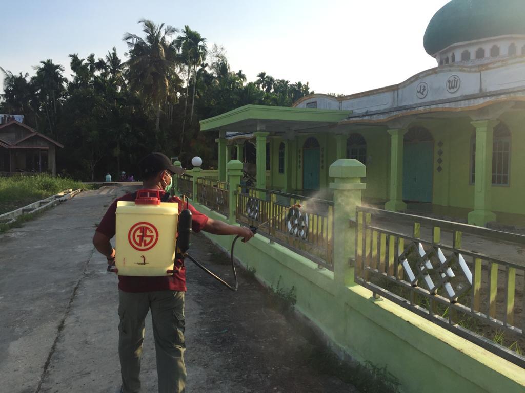 DPD Golkar Inhil dan Pramuka Lakukan Penyemprotan Disinfektan di Tempuling dan Kempas