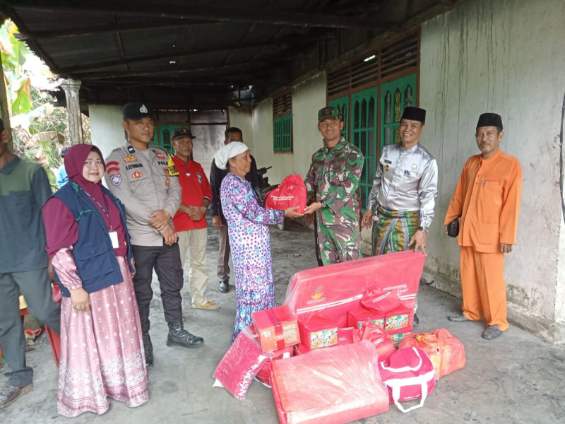 Babinsa Koramil 03/Tpl Dampingi Penyerahan Bantuan Paket Sembako Untuk Korban Kebakaran