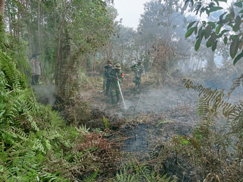 Babinsa Koramil 05/Gas Lakukan Pemadaman Api Di Desa Simpang Gaung