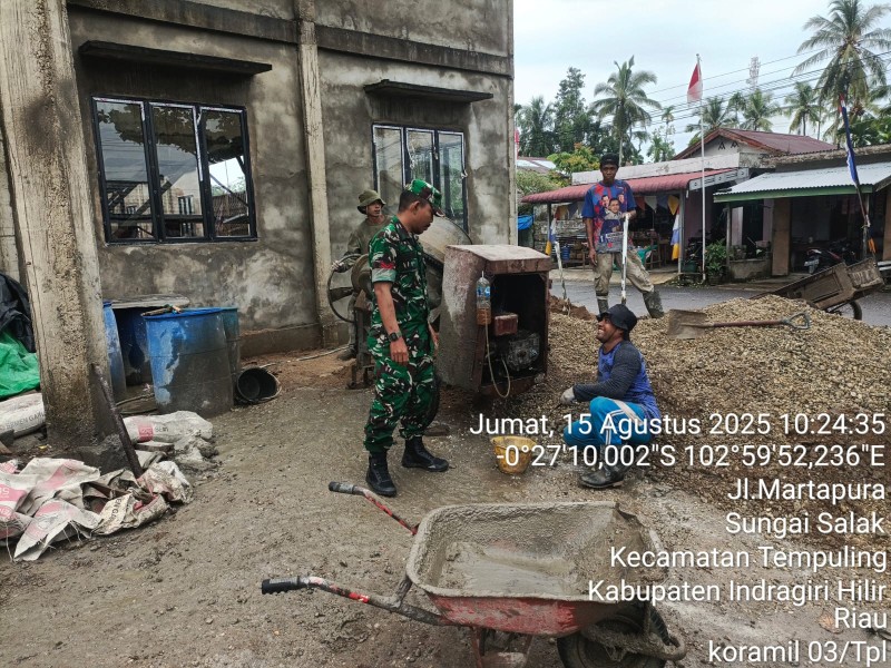 Kopka RH Tambunan, Babinsa Koramil 03/Tempuling, Jalin Silaturahmi dengan Warga di Proyek Gedung Serbaguna