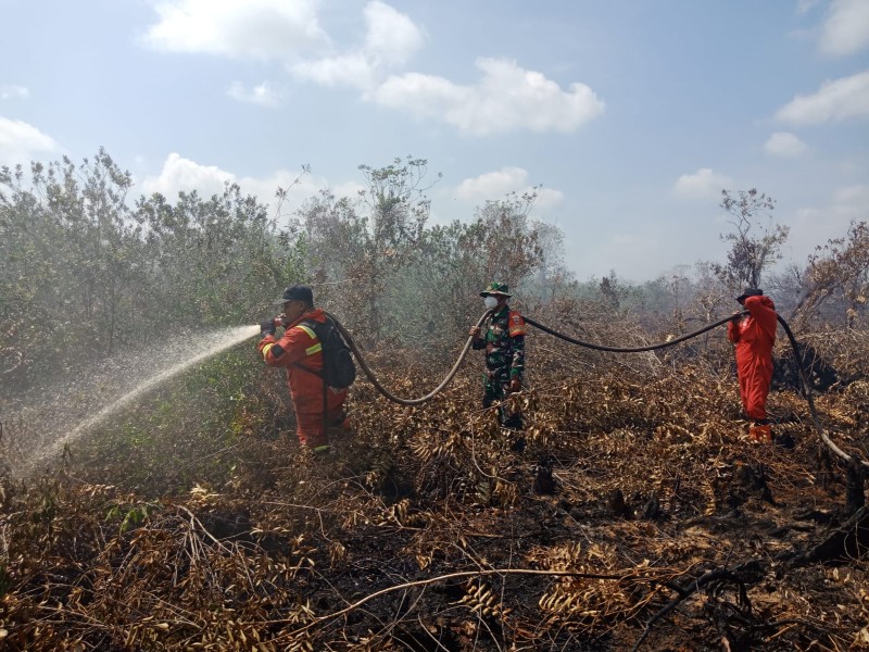 Babinsa Koramil 03/Tempuling, TNI, dan Tim Gabungan Berhasil Padamkan Karhutla di Wilayah Kempas