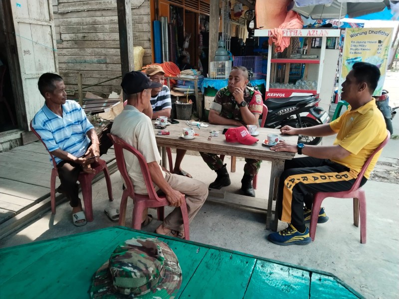 Rutin Komsos Babinsa Koramil 05/GAS Kodim 0314/Inhil Sertu Guntur Giat Komsos Bersama Warga Binaan di Warung Kopi