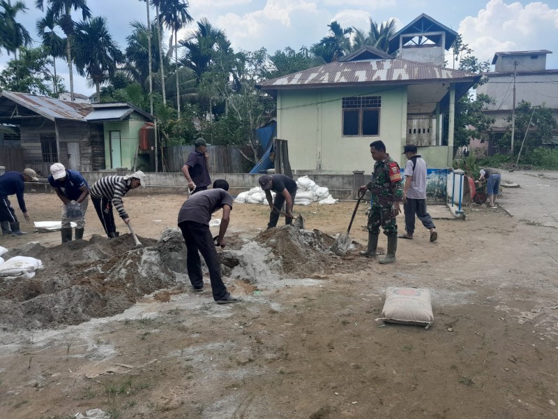 Babinsa Gotong Royong Bersama Warga Perbaiki Jalan Rusak di Desa Teluk Kabung