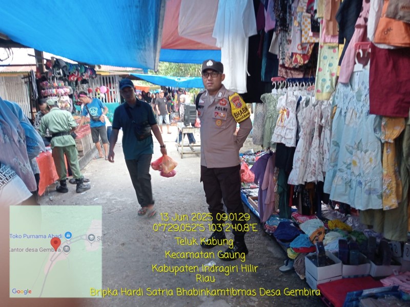 Bripka Hardi Satria Berikan Himbauan Kamtibmas Terhadap Pedagang dan Pengunjung di Pasar Mingguan Desa Gembira