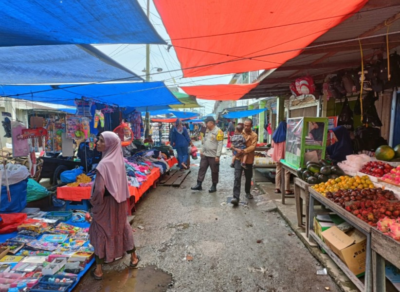 Bhabinkamtibmas Desa Belantaraya Aiptu Edysah Putra Rutin Bangun Patroli Sambang ke Pasar mingguan