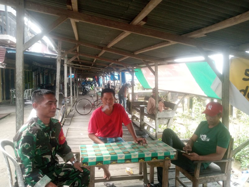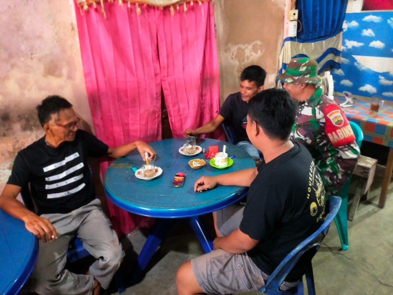 Manfatkan Kedai Kopi, Babinsa Koramil 03/Tpl Laksanakan Komsos dengan Tomas