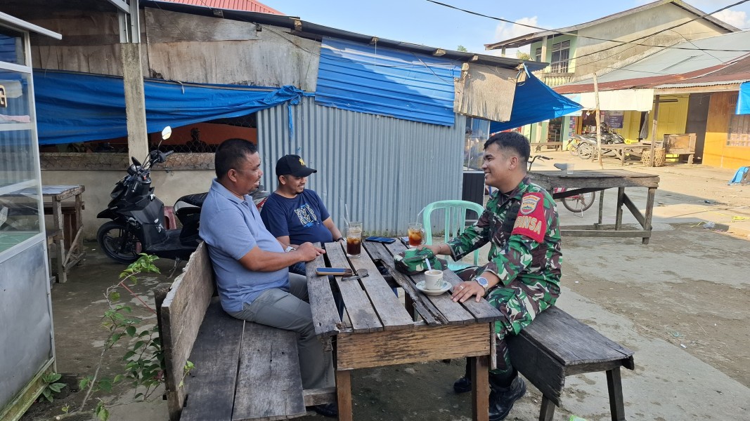 Bincang Santai dengan Tokoh Masyarakat, Serda JG Hutauruk Bangun Kedekatan di Desa Teluk Kiambang