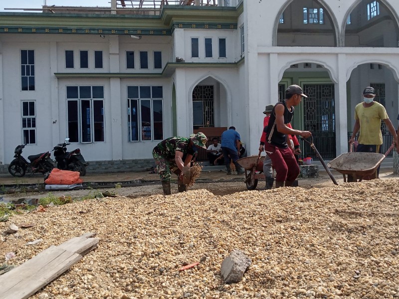 Babinsa Koramil 04/Kuindra Menyatu dengan Masyarakat dalam Kegiatan Gotong Royong Membersihkan Mesjid