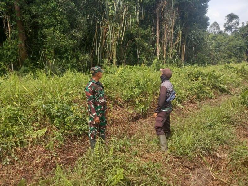 Babinsa Koramil 05/Gas Pratu Sandi Laksanakan Patroli Dengan Warga di Lahan Rawan Kebakaran
