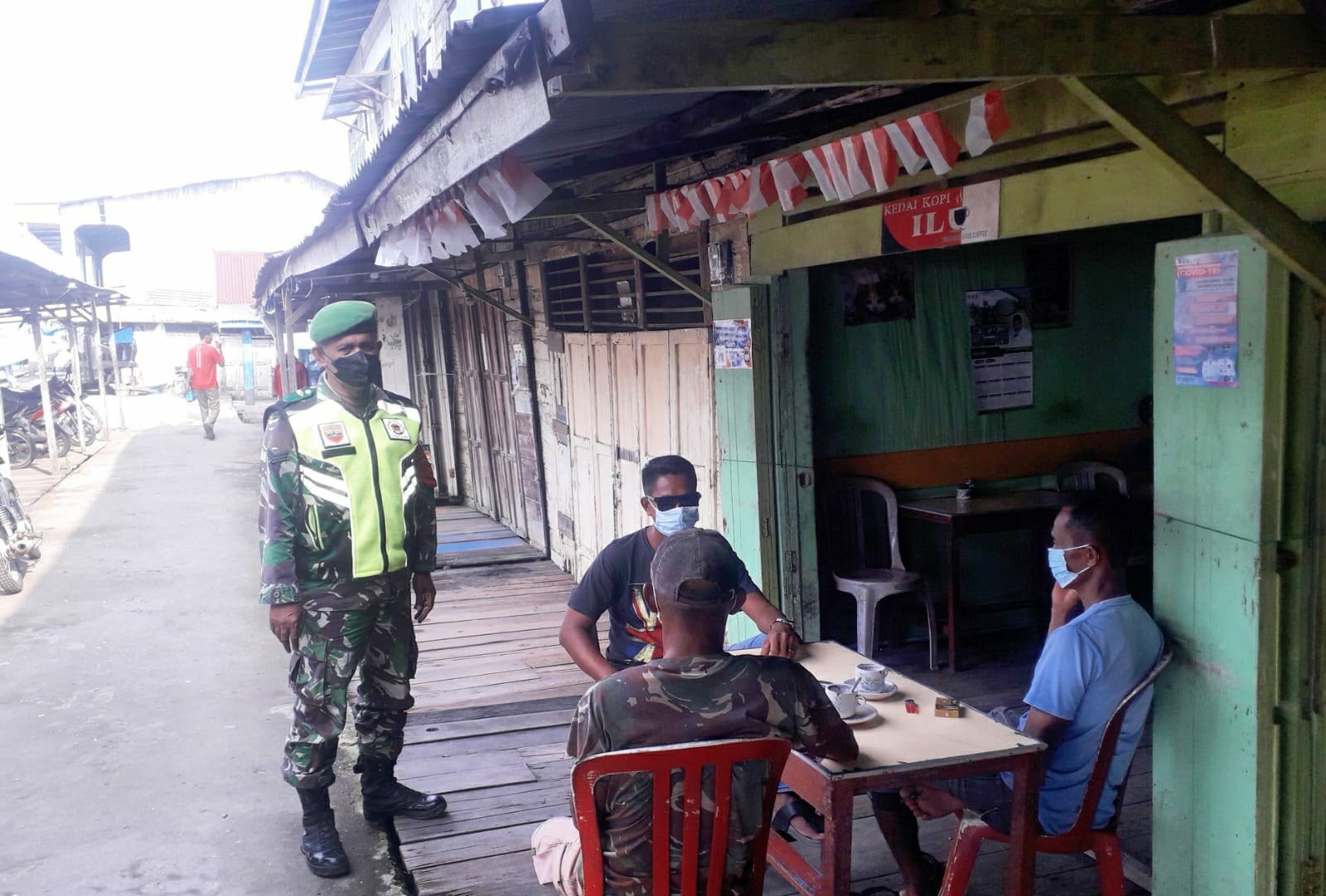 Koramil 02/Tanah Merah dan TNI AL serta Satgas Tetap Himbau Protkes di Pelabuhan
