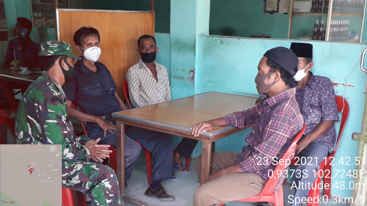 Komsos, Babinsa Koramil 09/Kemuning Ajak Warga Jaga Khamtibmas dan Patuhi Protkes