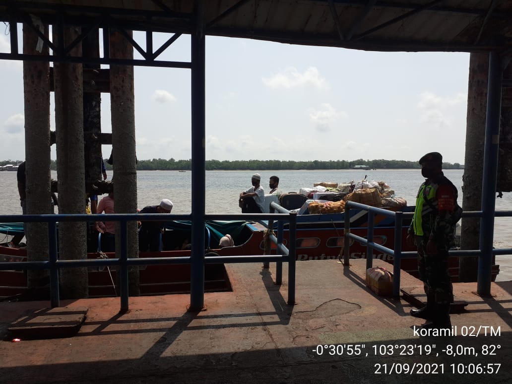 Babinsa Koramil 06/Kateman Stanby Laksanakan Penegakan Protkes di Pelabuhan