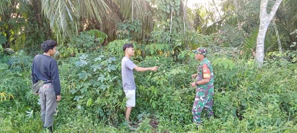 Sosialisasi Karhutla, Koramil 05/Gas Jajaran Kecamatan Gaung Anak Serka Sertu Guntur dan Pratu Sandi