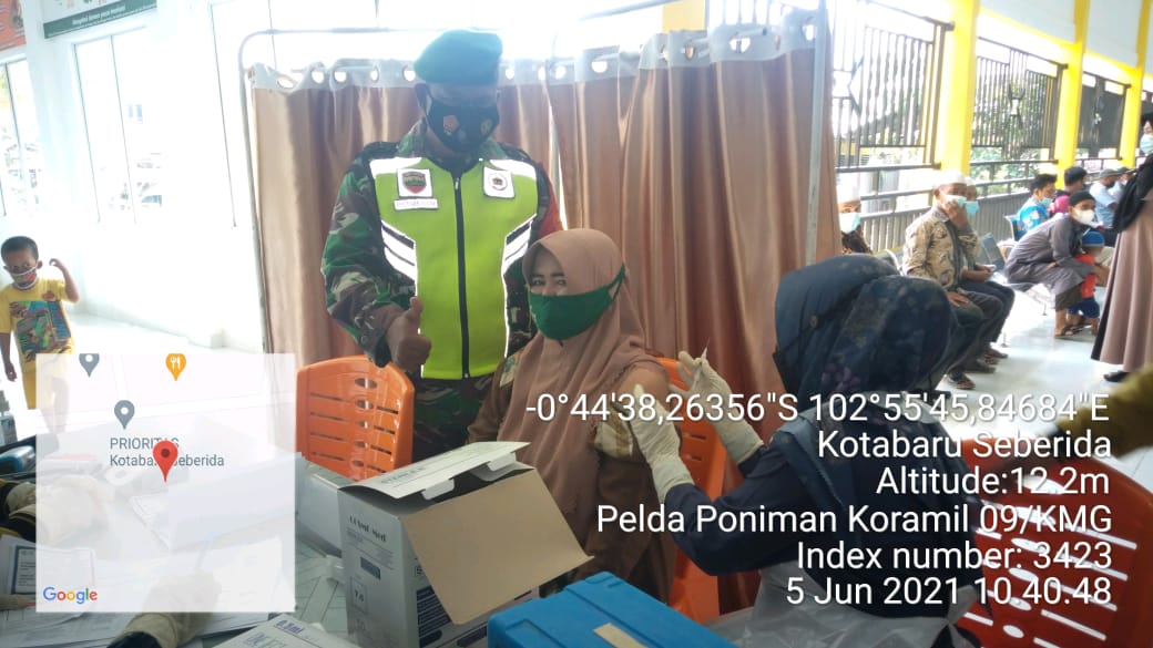 Pelda Poniman Dampingi Vaksinasi Lansia di Puskesmas Keritang