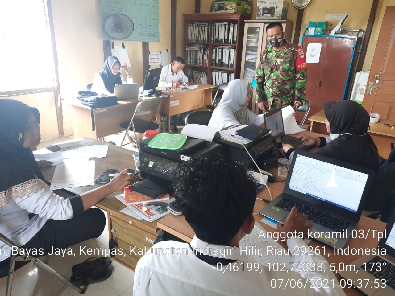 Babinsa Desa Bayas Jaya Koramil 03/Tempuling Komsos Dengan Perangkat Desa