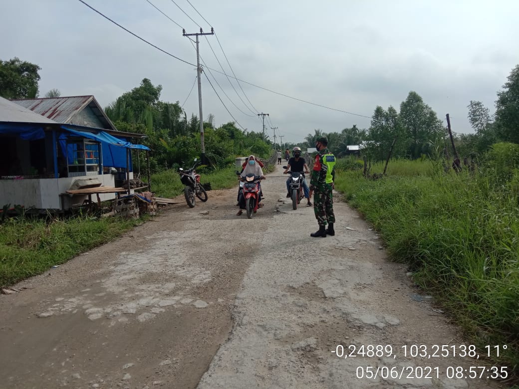 Jalan Lintas Sungai Luar Dilakukan Penegakan Prokes oleh TNI Koramil 12/Batang Tuaka