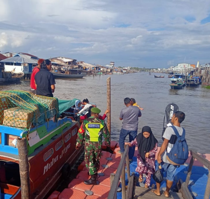 Babinsa Tanah Merah Rutin Lakukan Penegakan Protokol Kesehatan di Pelabuhan