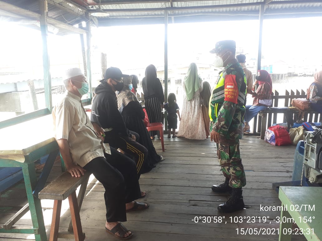 Suasana Lebaran, Koramil 06/Kateman dan Satgas Rutin Laksanakan Pengamanan PPKM Mikro
