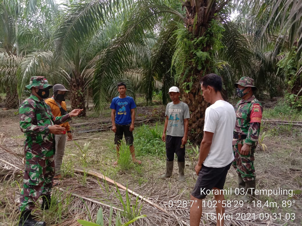 Keluar Masuk Kebun Masyarakat, Babinsa Koramil 02/Tanah Merah Sosialisasikan Bahaya Karhutla