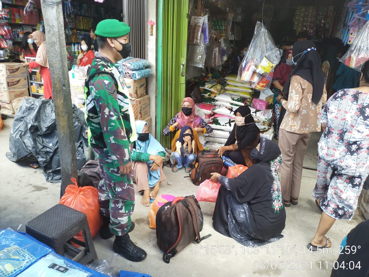 Jelang Lebaran, Babinsa Koramil 12/Batang Tuaka Tak Henti Himbau Protkes